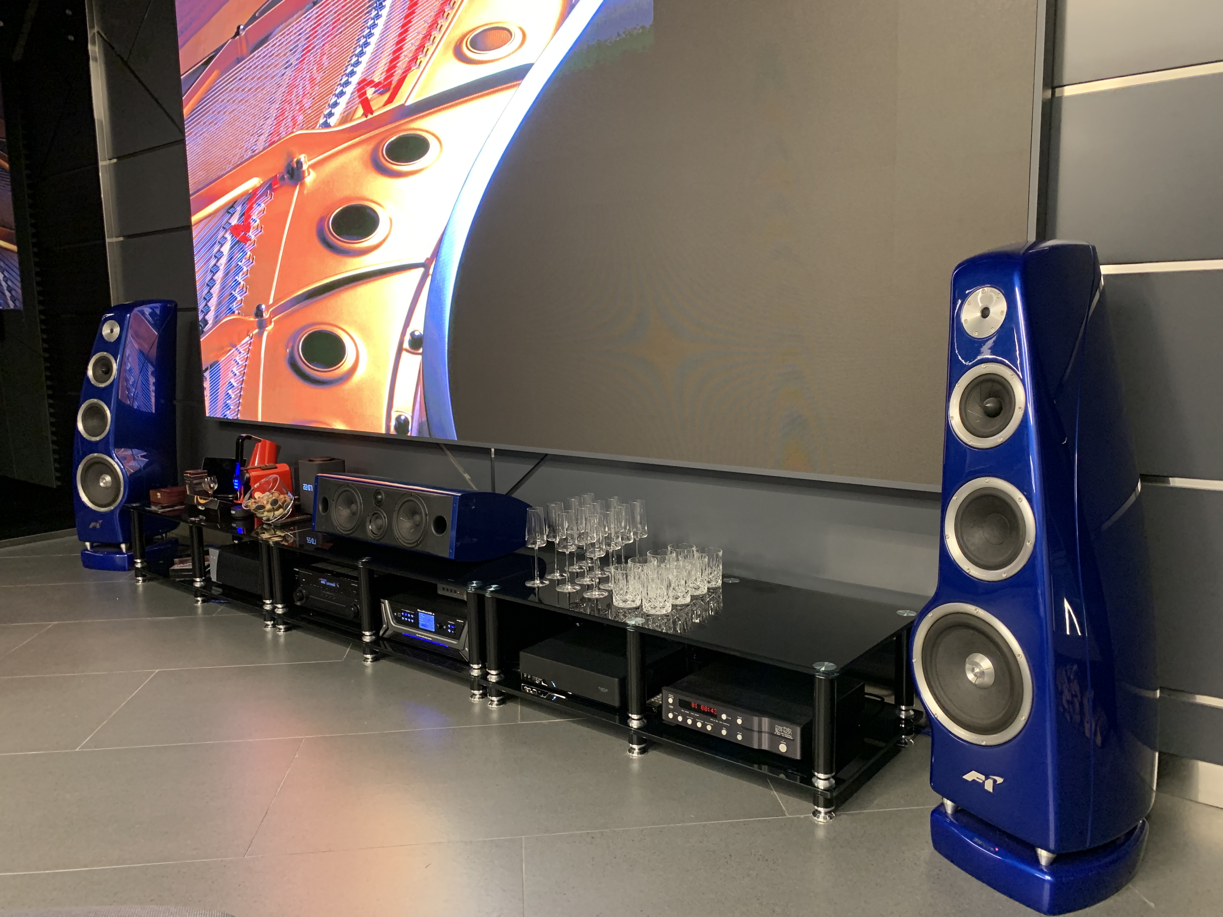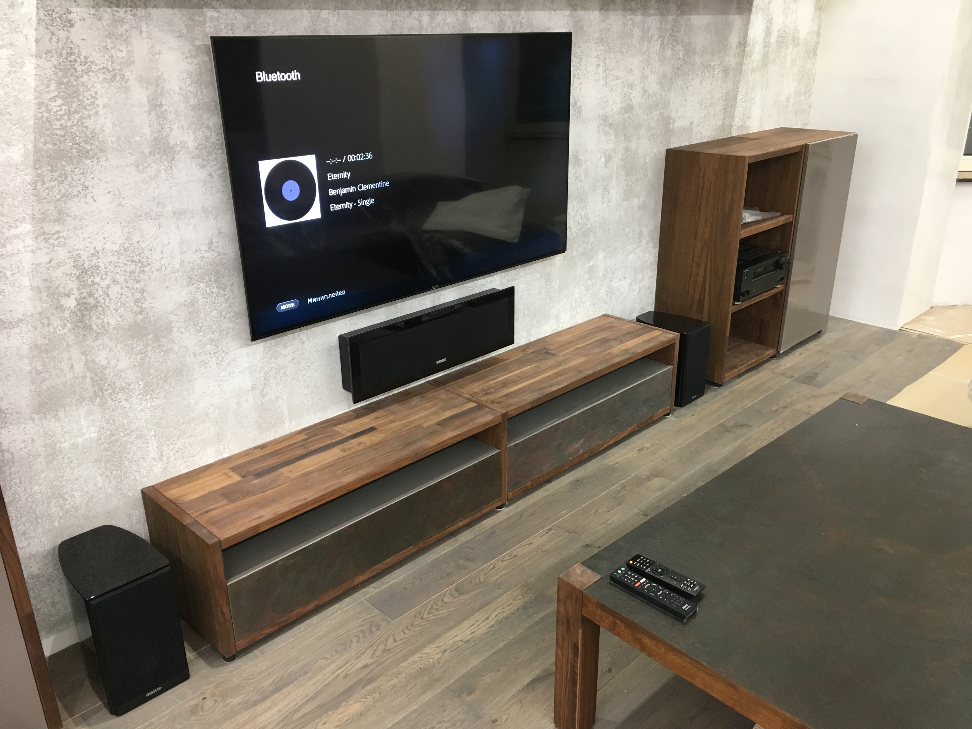 2021 – Home Theater with Dolby Atmos 5.2.2 – Sony OLED TV, Sonus Faber acoustic systems, Sonus Faber subwoofers, NAD AV receiver, AST karaoke system, Shure microphones, Midas mixer, KLARK TEKNIK feedback suppressor.