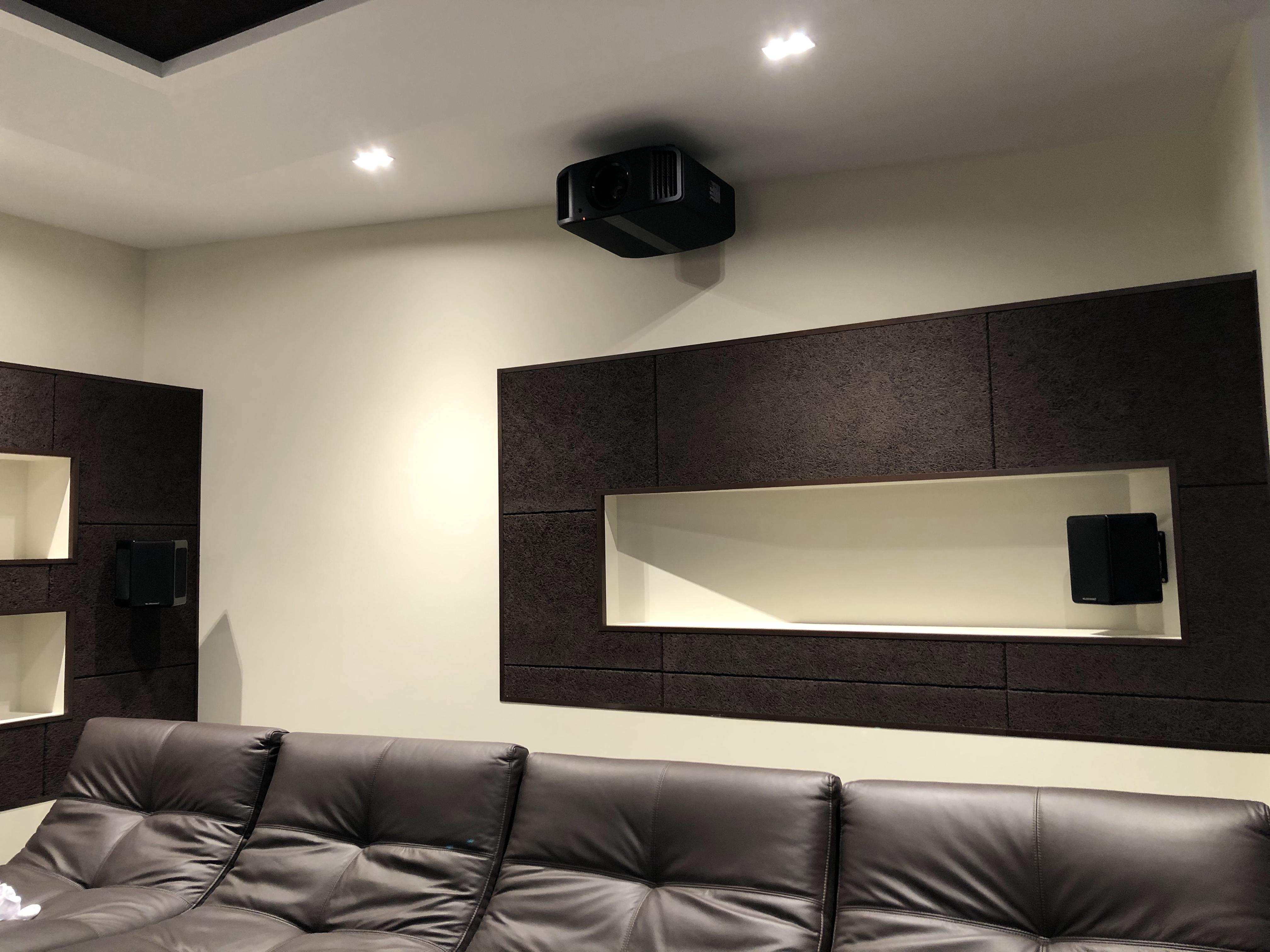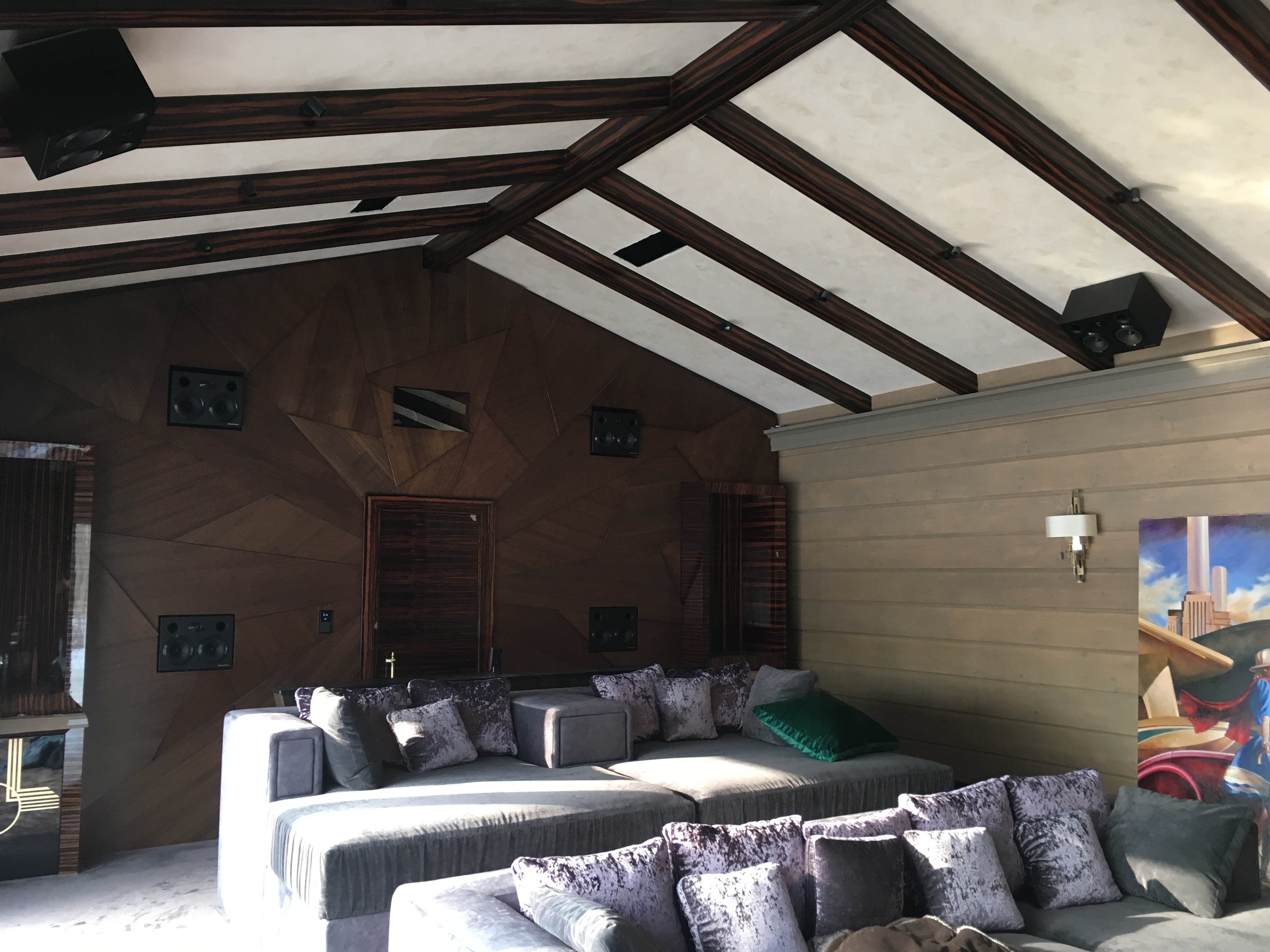 2018 – Media Room with Dolby Atmos 5.2.2 – DLS acoustic systems, Monitor Audio subwoofers, Screen Research acoustically transparent screen, Sony laser projector.