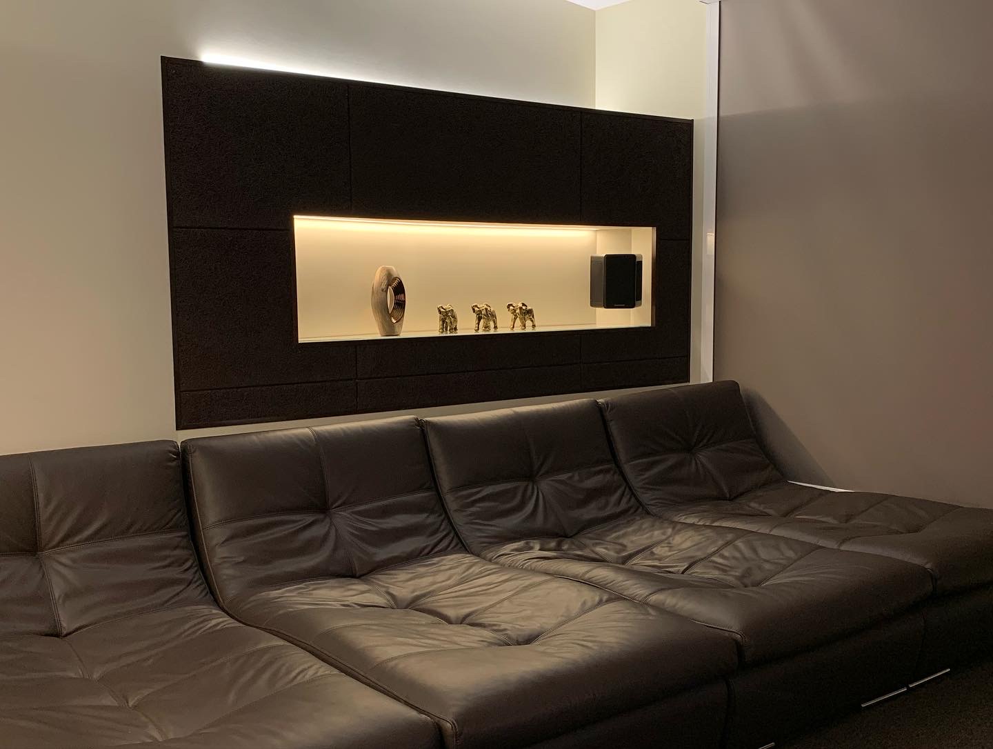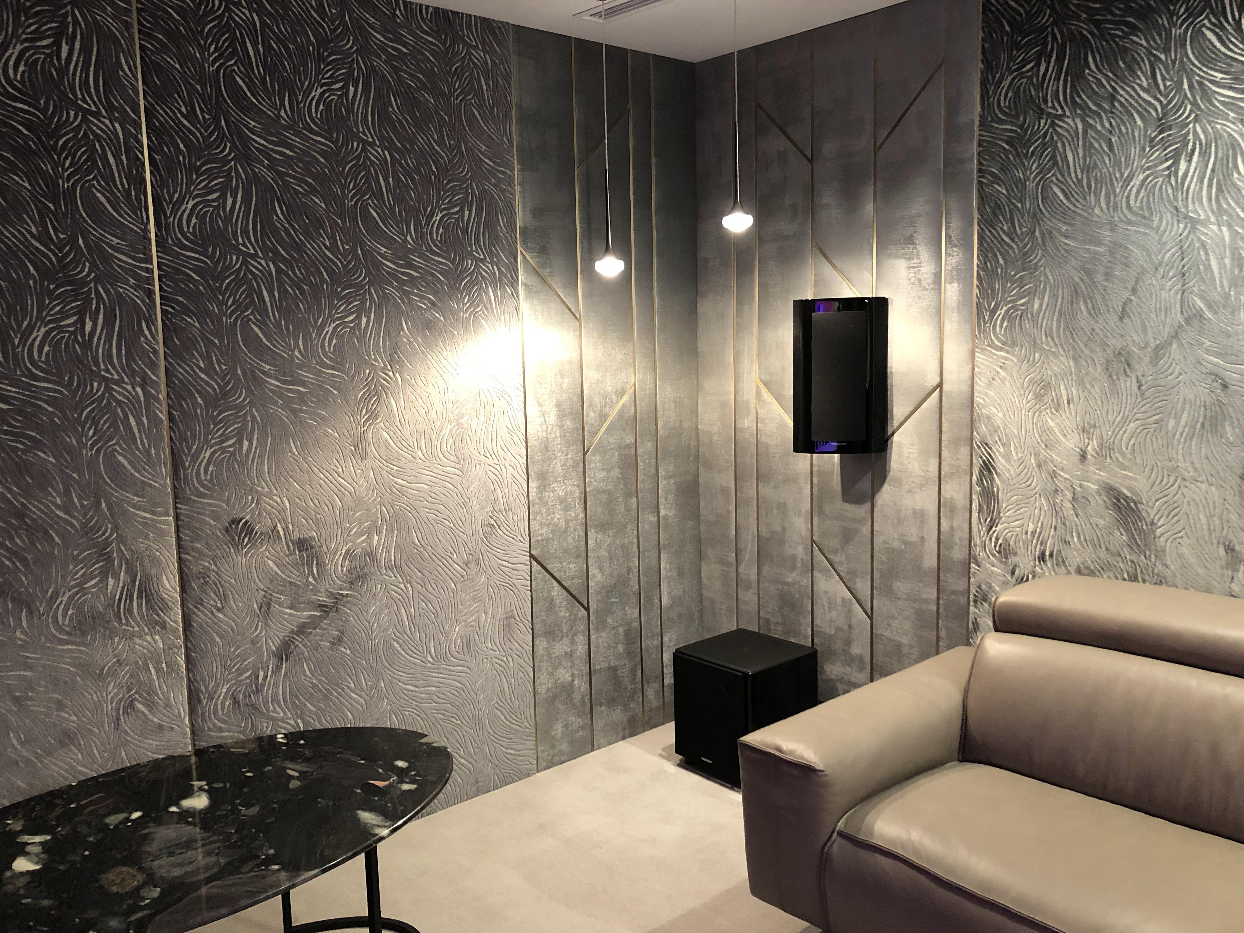 2019 – Media Room in Loft Style – Monitor Audio acoustic systems and REL subwoofer.