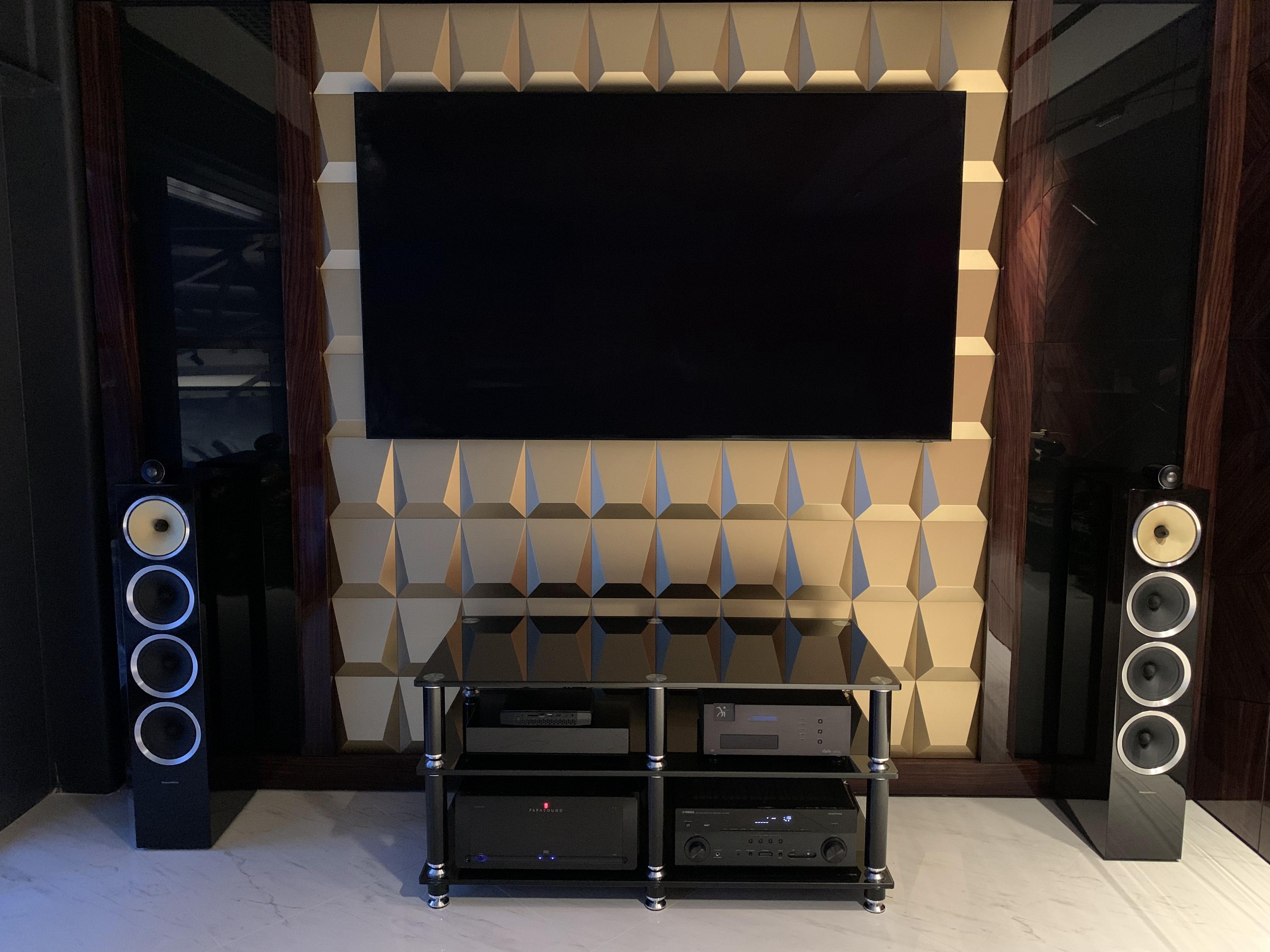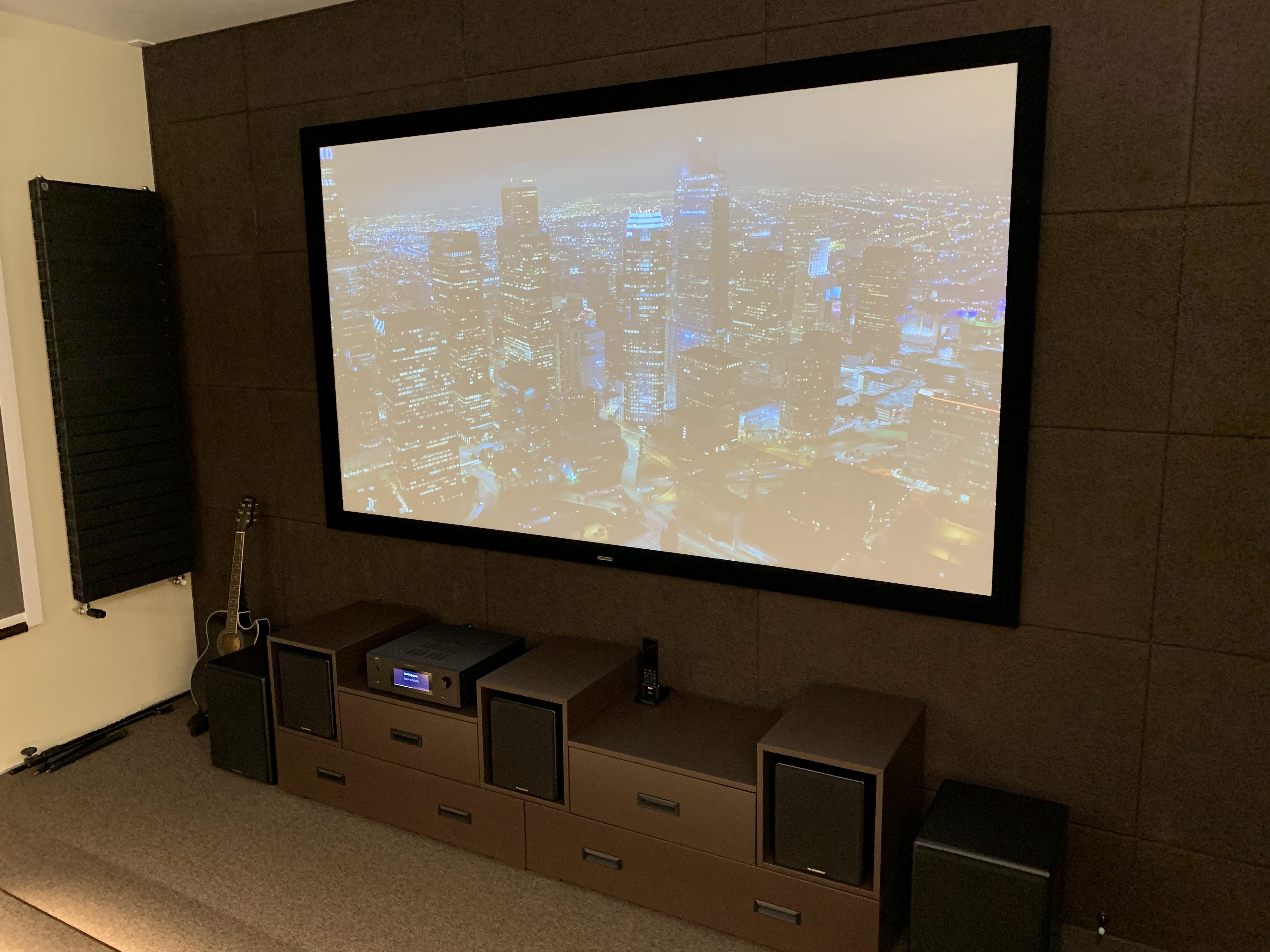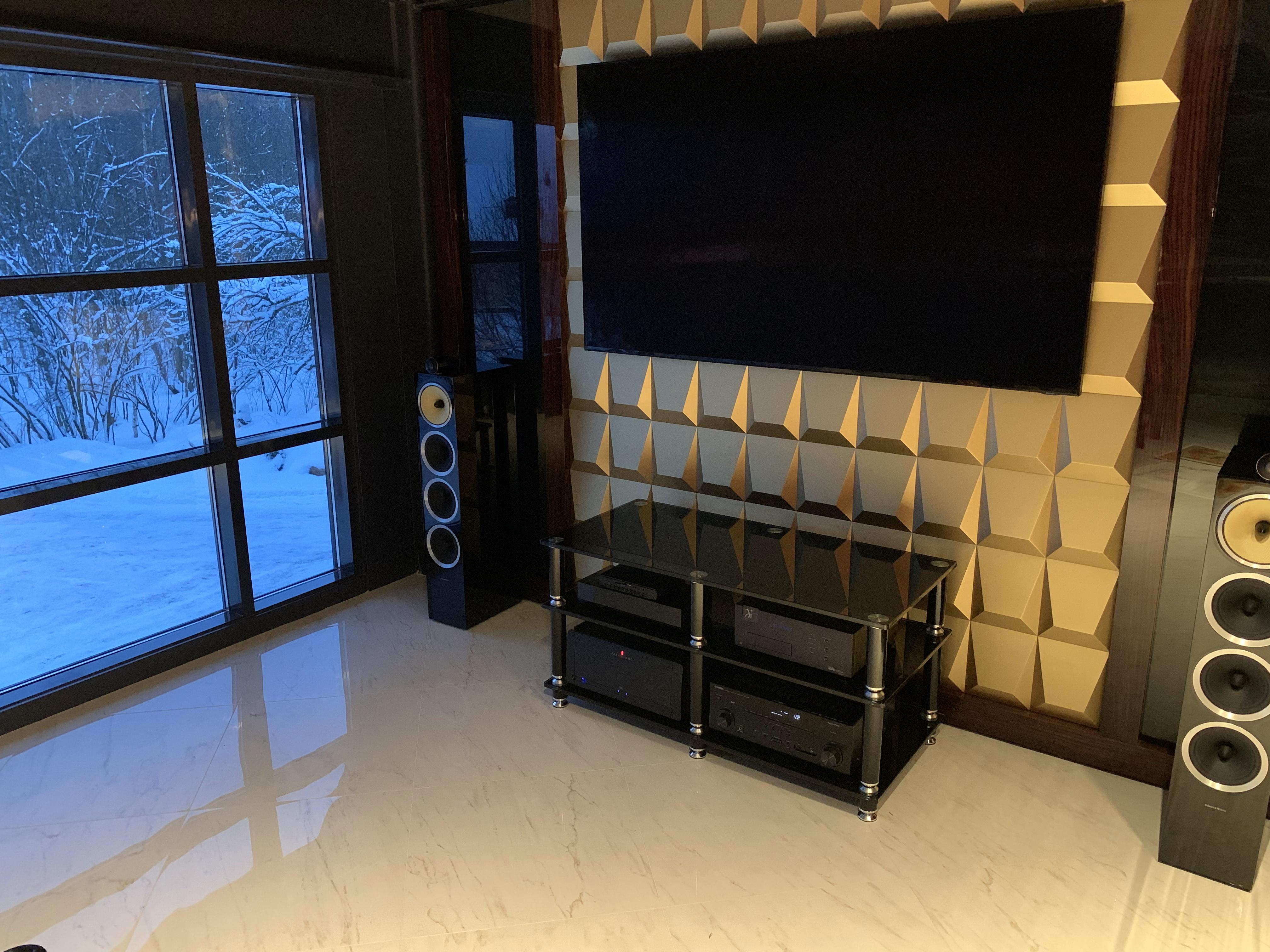 2020 – Home Theater with Dolby Atmos 7.1.4 and 212 inch 4K LED CinemaScope video wall screen (updated from projector) – Bowers & Wilkins acoustic systems, Bowers & Wilkins subwoofer, Marantz processor, Jeff Rowland and Marantz amplifiers, RTI control system, Oppo media player, Acoustic Signature turntable, EAR phono preamplifier, Manley preamplifier.